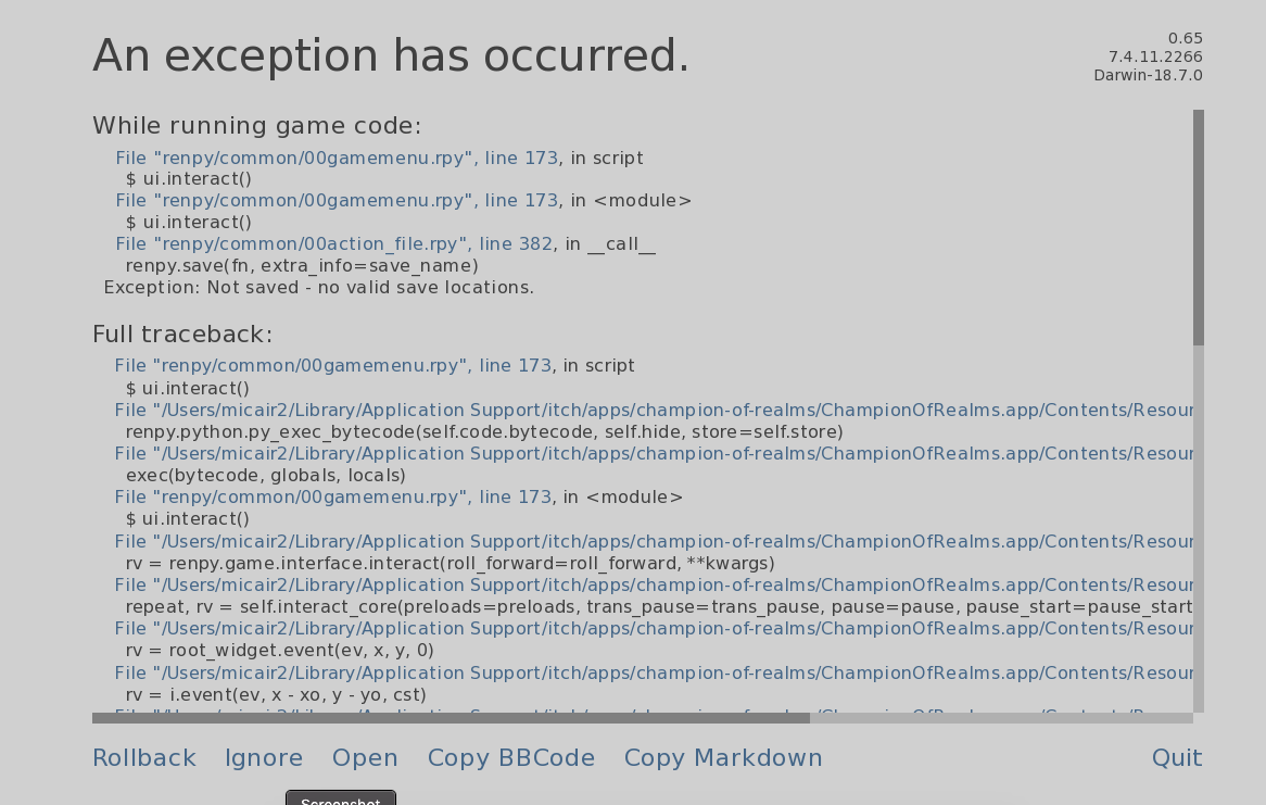 File "champion-of-realms/ChampionOfRealms-0.65-pc/renpy/ast.py", line 721, in execute