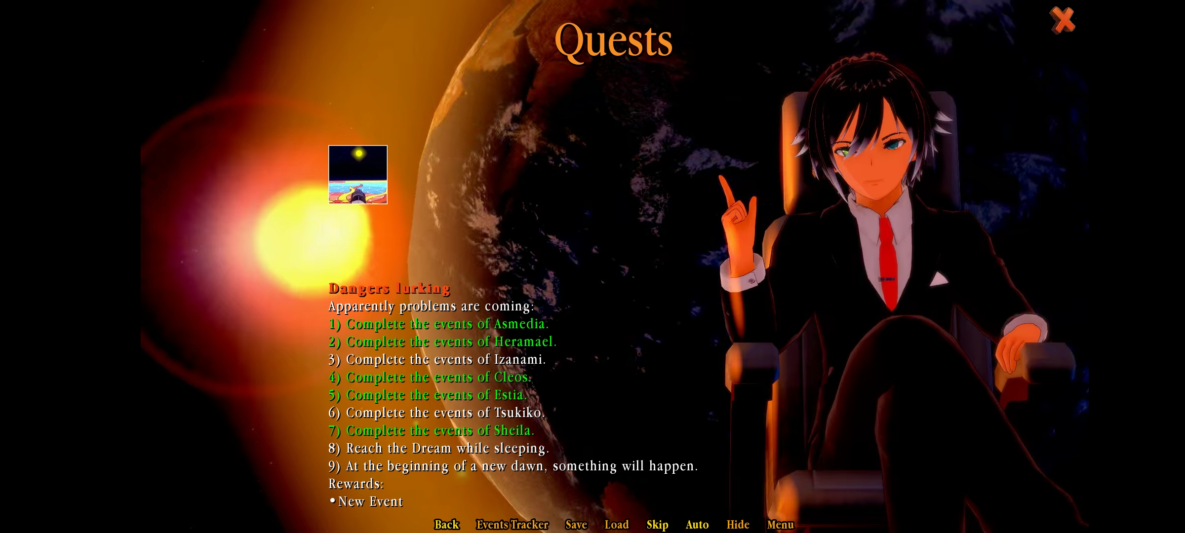 I don't know how to progress further; the questline says I need to complete Izanami and Tsukiko's events but I get no new prompts when I interact with either of them, what am I supposed to do?