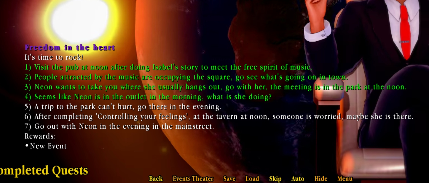 hey!! The Freedom quest with Neon it's bugged for me!! i completed it,but its still here in the list! and i think..because of this,i can't interract with Isabelle anymore.
