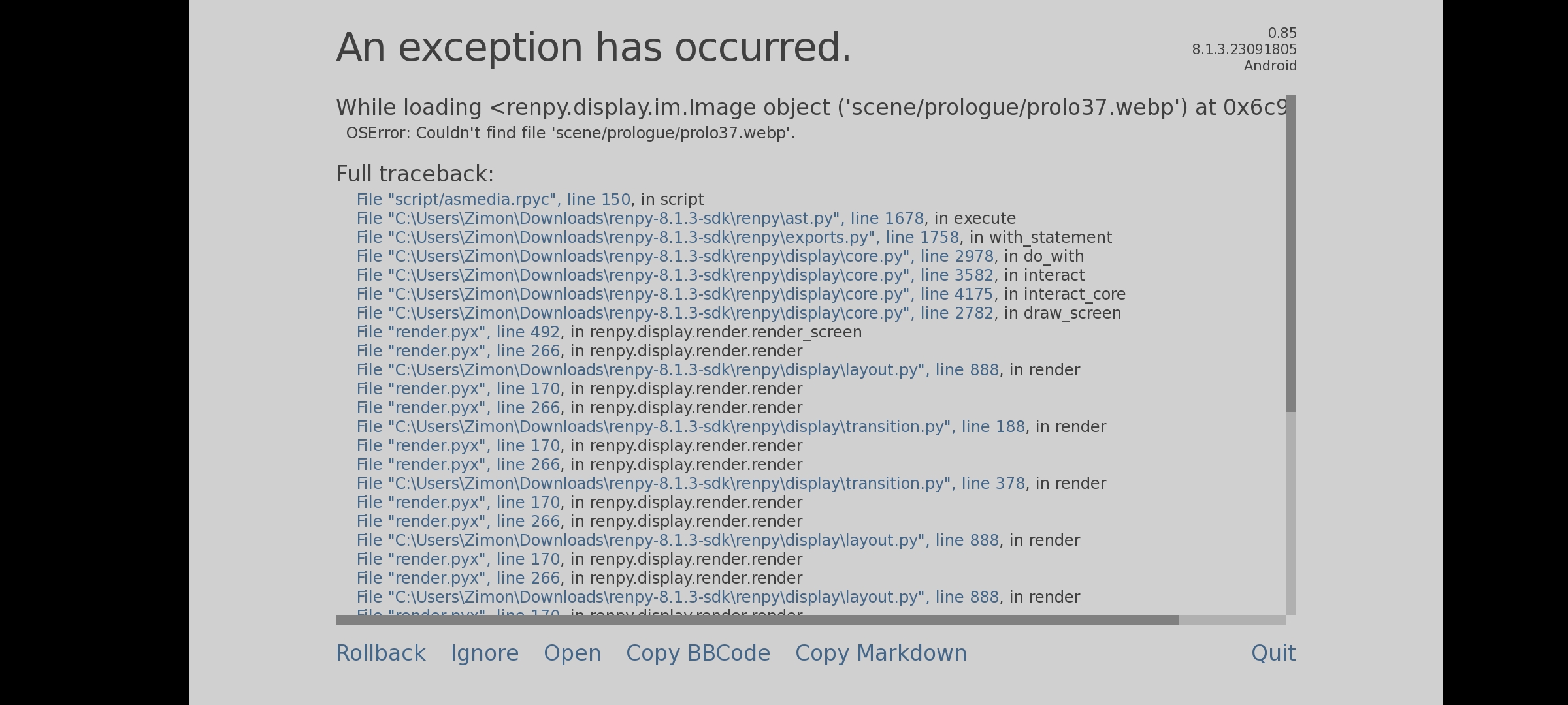 I play on cellphone and there are certain scene in game that has a black scene but a working dialogue and neon scene alway black out but has a working dialogue and sometimes I find a problem like errors